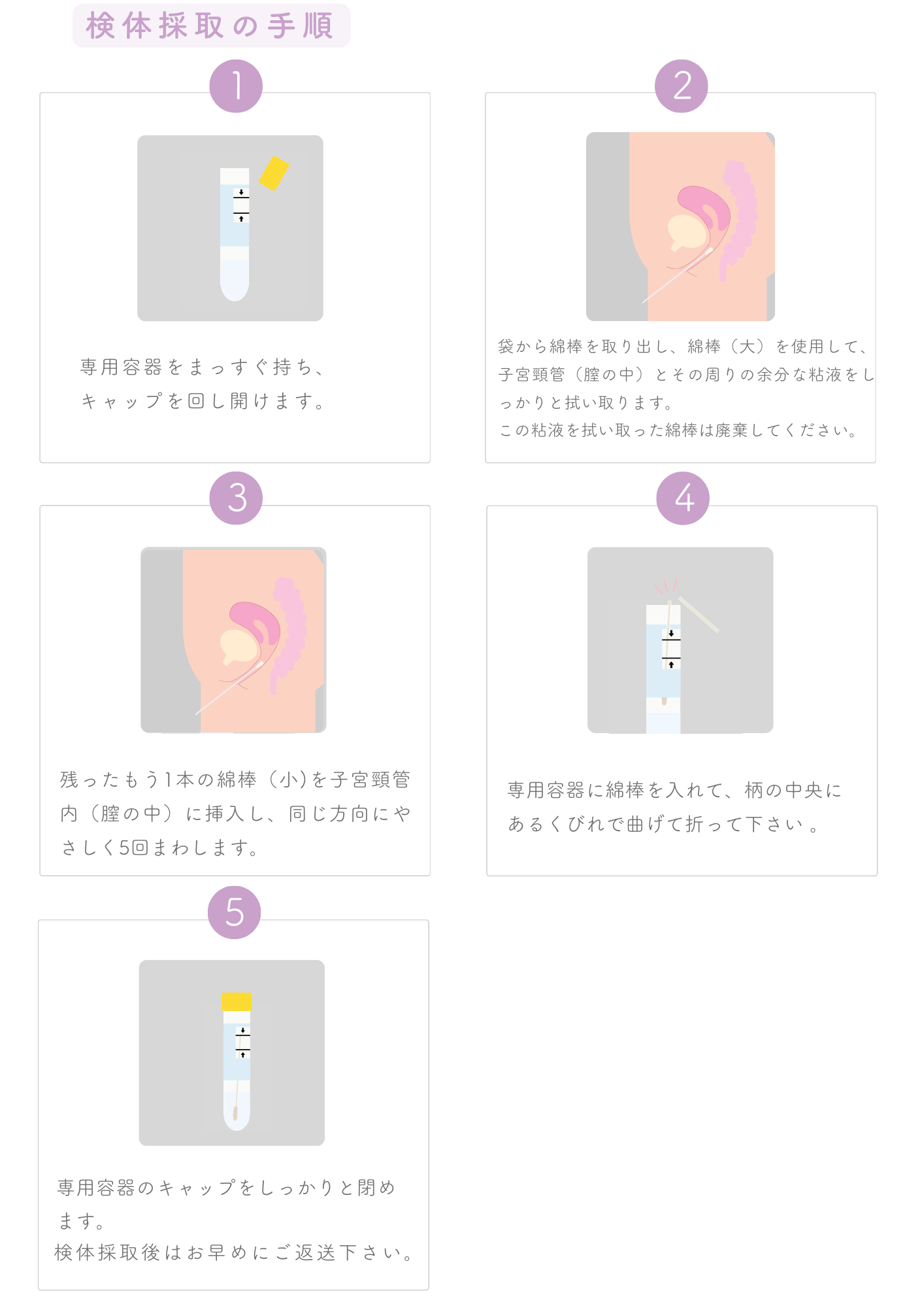 検査器具は全て「使い捨てタイプ」のものですのでご安心ください。